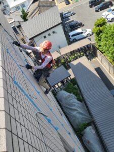 上塗りのシリコンを塗布する様子です。